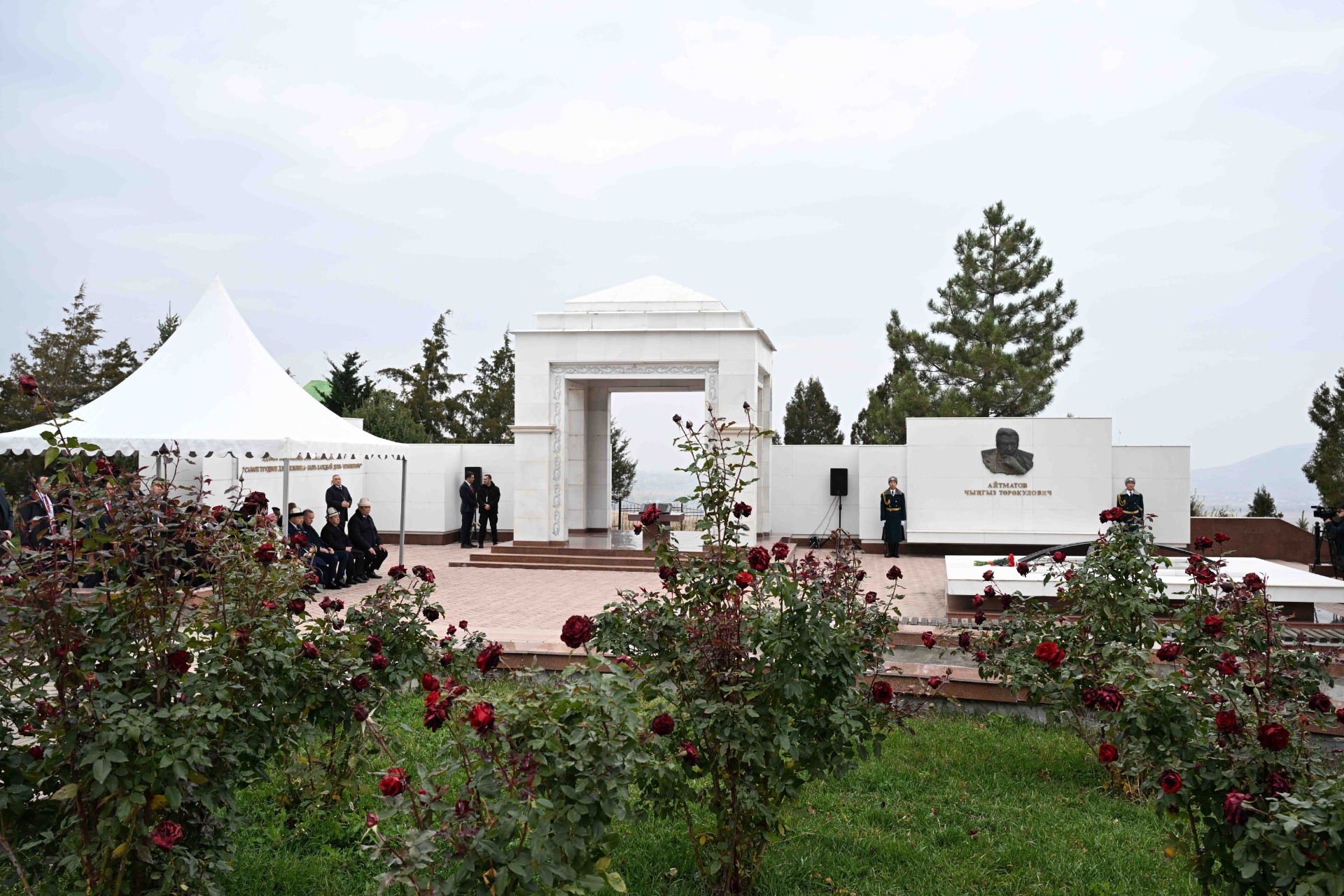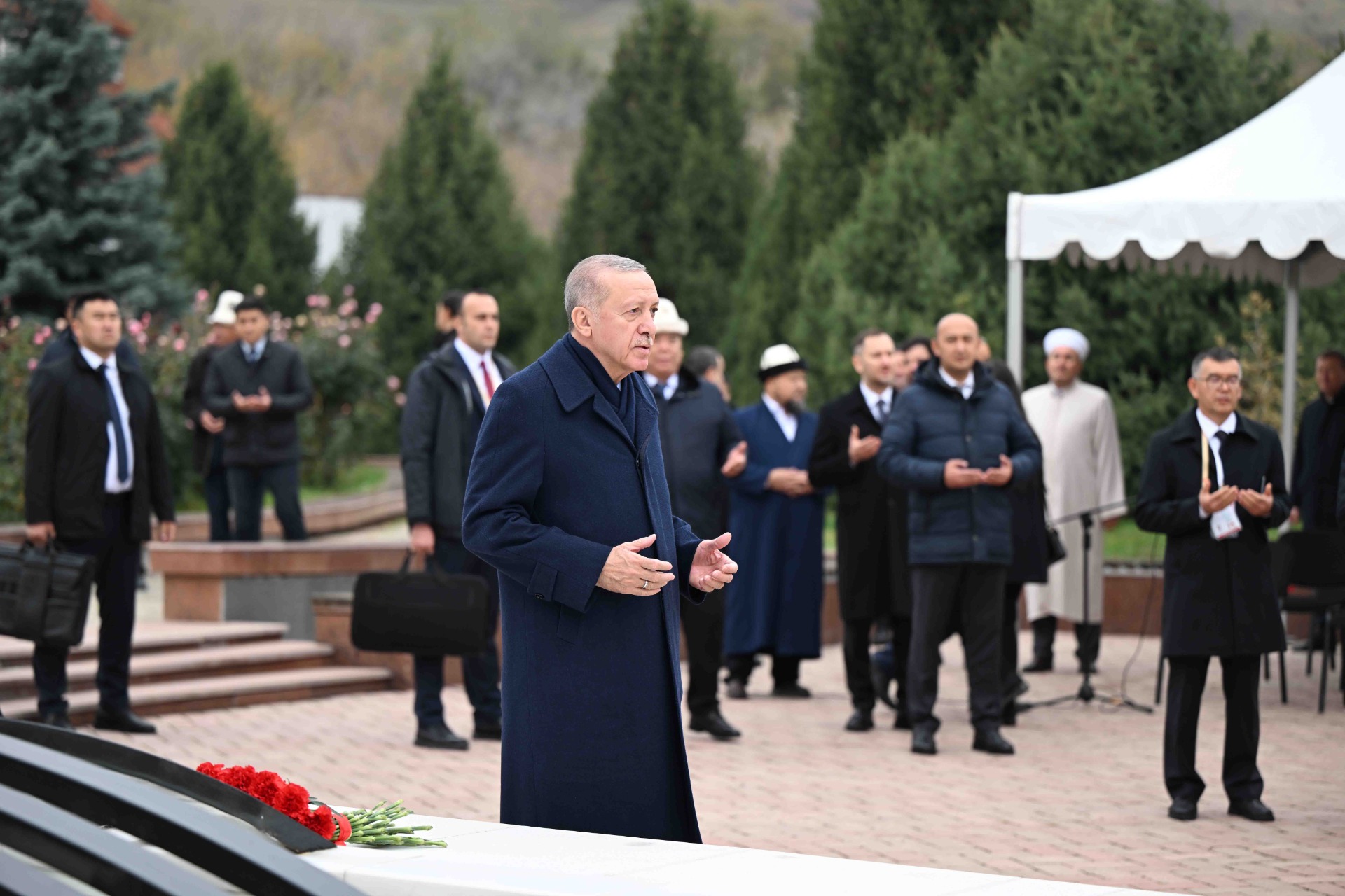 Глава Турции также возложил цветы к могиле писателя Чингиза Айтматова, где прочитана поминальная молитва.