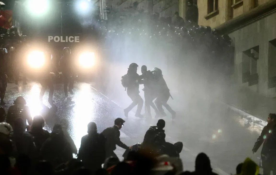 Ночью 2 декабря протестующих разгоняли с помощью слезоточивого газа и водометов, в ответ демонстранты отстреливались петардами и фейерверками, на площади Руставели митингующие подожгли покрышки. После разгона акций полиция задерживала людей в аптеках, метро и парках.