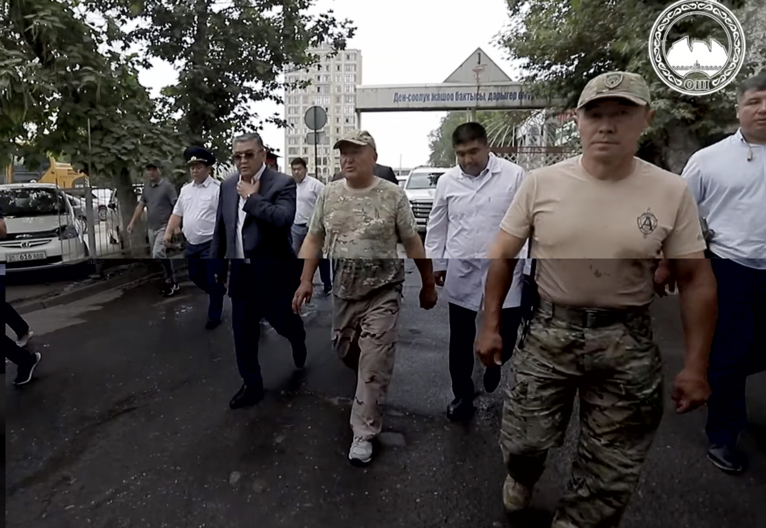 После замечания главы ГКНБ Камчыбека Ташиева главе Минтранса Абсаттару Сыргабаеву мэр Оша Женишбек Токторбаев тоже переоделся в камуфляжную форму.
