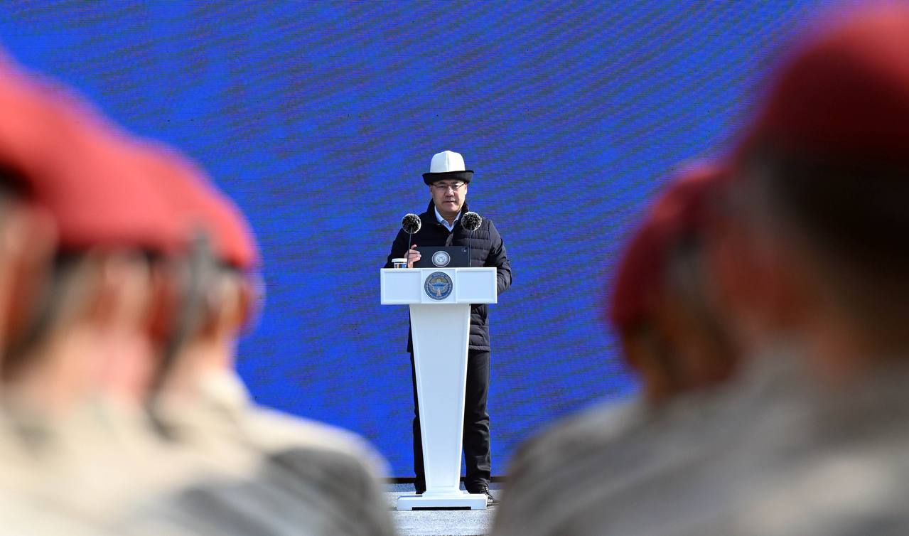 Садыр Жапаров, обращаясь к горожанам и гостям, отметил, что государственный флаг Кыргызской Республики — это священный символ нашей независимости, суверенитета и единства народа.