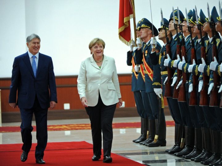 По его данным, вчера, 13 июля, в международном аэропорту «Манас» состоялась официальная церемония встречи президента КР Алмазбека Атамбаева с Ангелой Меркель. На флагштоках были подняты государственные флаги Кыргызстана и Германии, выстроен почетный караул, прозвучали гимны двух стран.