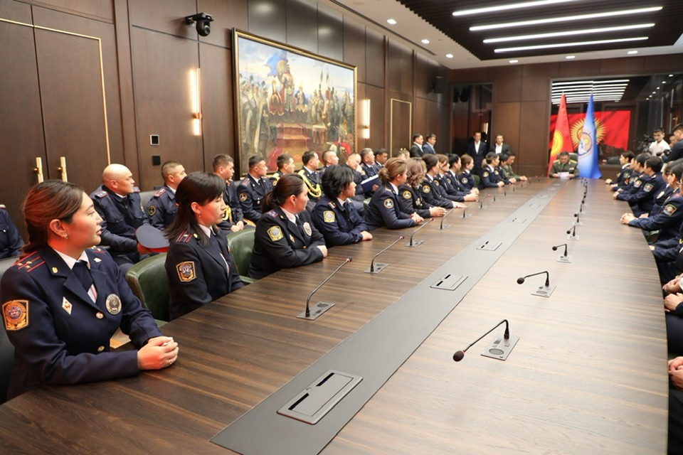 Во время встречи ряду сотрудников милиции вручены нагрудные знаки и благодарность от имени Камчыбека Ташиева.
