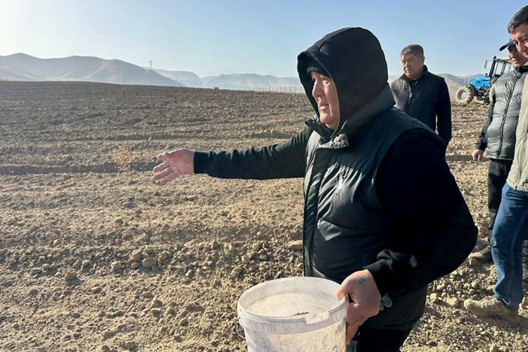 Уточняется, что Женишбек Токторбаев приехал в село Озгур и принял участие в посевной кампании.