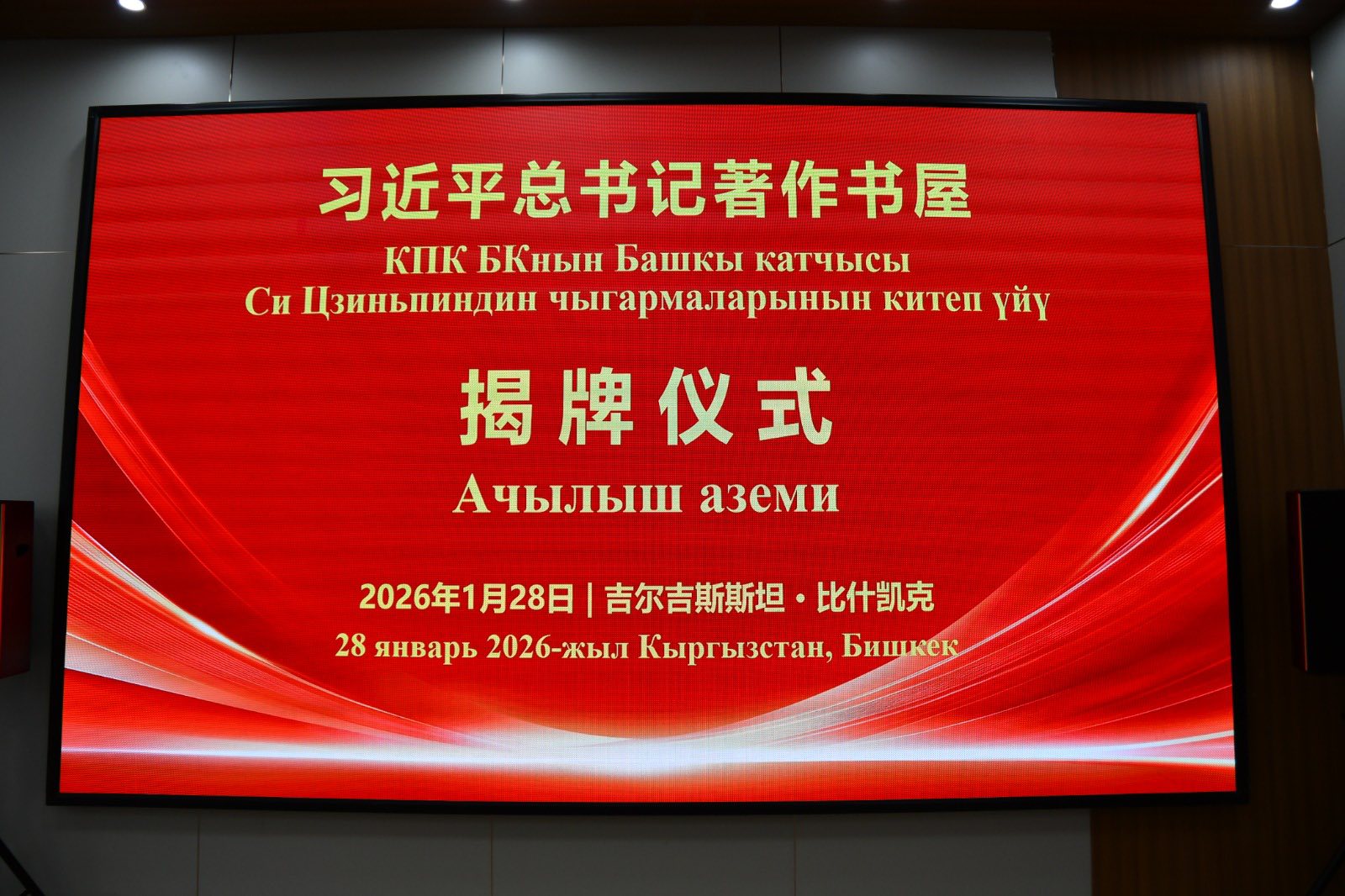 В официальном сообщении данный эпизод не упоминается. Вместе с тем фотографии, опубликованные пресс-службой администрации главы государства, свидетельствуют о церемонии открытия книжного дома произведений председателя КНР Си Цзиньпина в Бишкеке.
