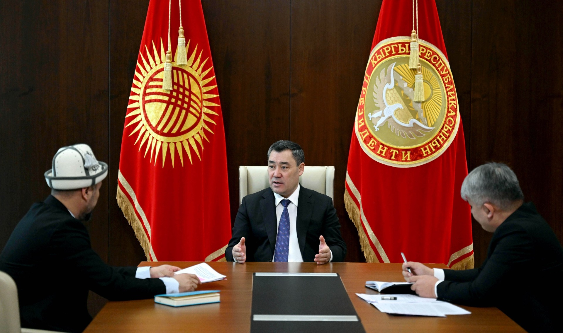 Президент Садыр Жапаров встретился с председателем Национального агентства по делам религий и межэтнических отношений Талантбеком Ташибековым. Об этом сообщили в пресс-службе главы государства.