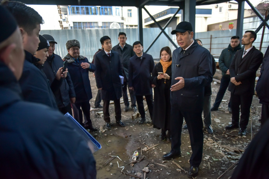 Мэр Бишкека Айбек Джунушалиев совместно с членами градостроительного совета проинспектировал строительные работы на участке проспекта Чуй, особое внимание уделив сохранению фонтанной и зеленой зон.