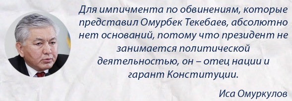 «Для объявления импичмента президенту по обвинениям Омурбека Текебаева нет оснований», - заявил ИА «24.kg» лидер парламентской фракции СДПК Иса Омуркулов.