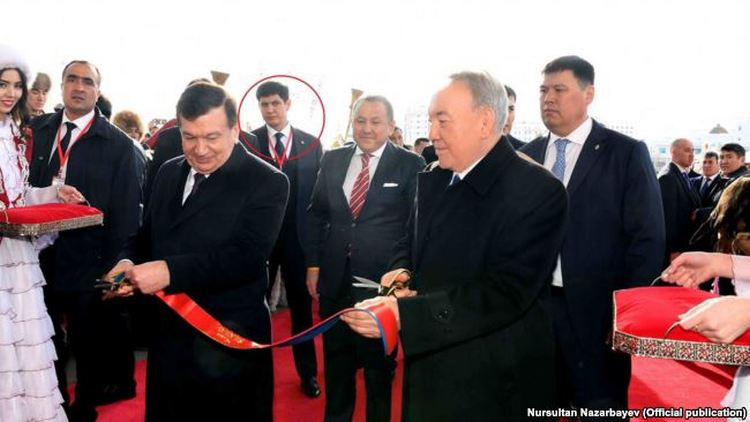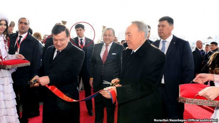 На фотографиях, сделанных 22–23 марта во время государственного визита президента Шавката Мирзиеева в Астану и опубликованных на официальном сайте президента Казахстана akorda.kz, зять главы узбекского государства Отабек Шаханов стоит за спиной у тестя. На груди у Шаханова висит бейдж сотрудника личной охраны президента.