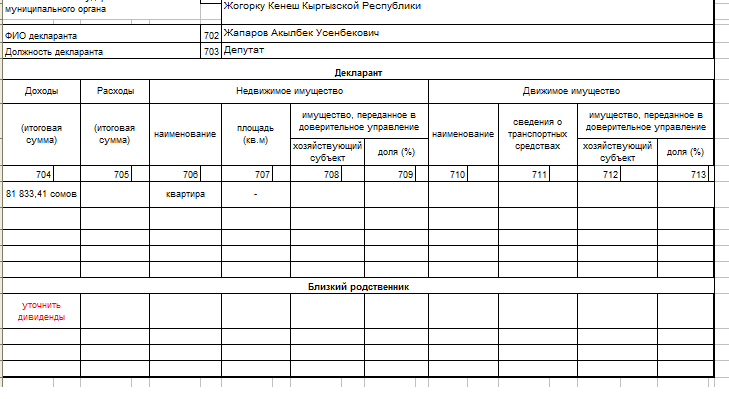 О доходах его ближайших родственников и вовсе ничего не сказано.
