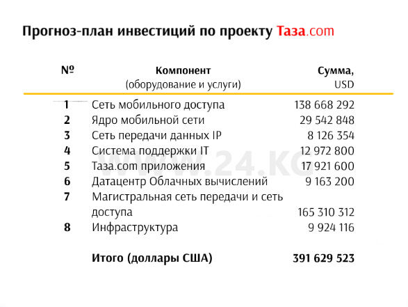 Если брать в расчет, что проект реализуют по примеру «Таза.com», то главным донором проекта будут совсем не международные финансовые институты, а ближайший сосед. Потенциальным инвестором проекта может стать китайская China Telecom.