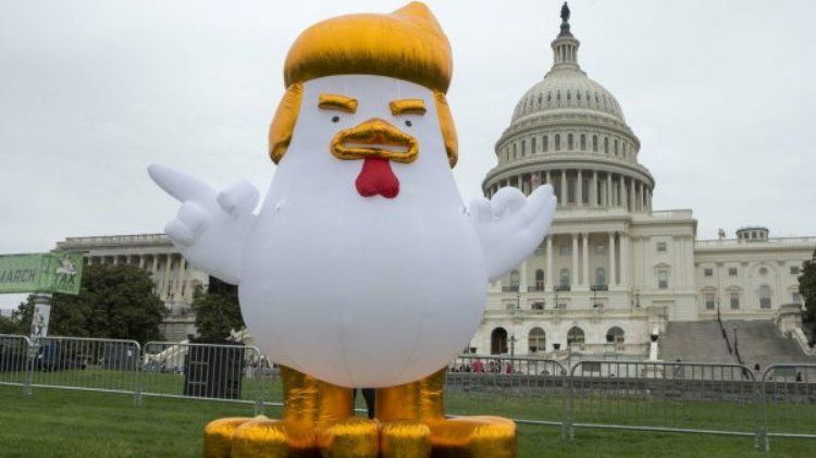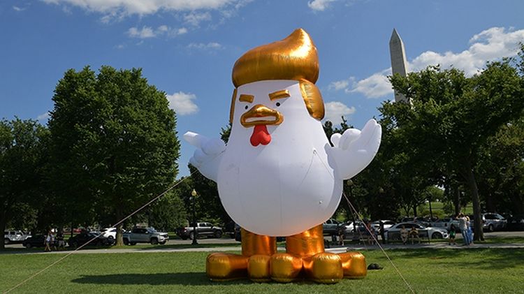 Надувной цыпленок высотой примерно в девять метров с прической, как у президента США Дональда Трампа, установлен у Белого дома в Вашингтоне. Об этом сообщила радиостанция KTSA.