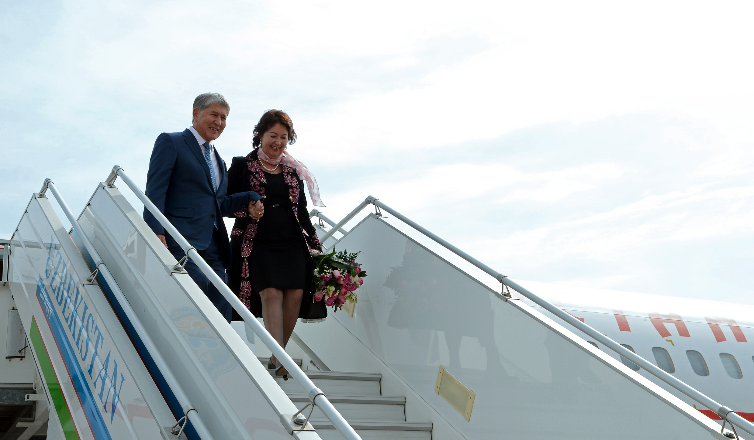 Президент Кыргызстана Алмазбек Атамбаев прибыл в Узбекистан с официальным визитом. В аэропорту Ташкента главу государства встречал лично Шавкат Мирзиеев с супругой.