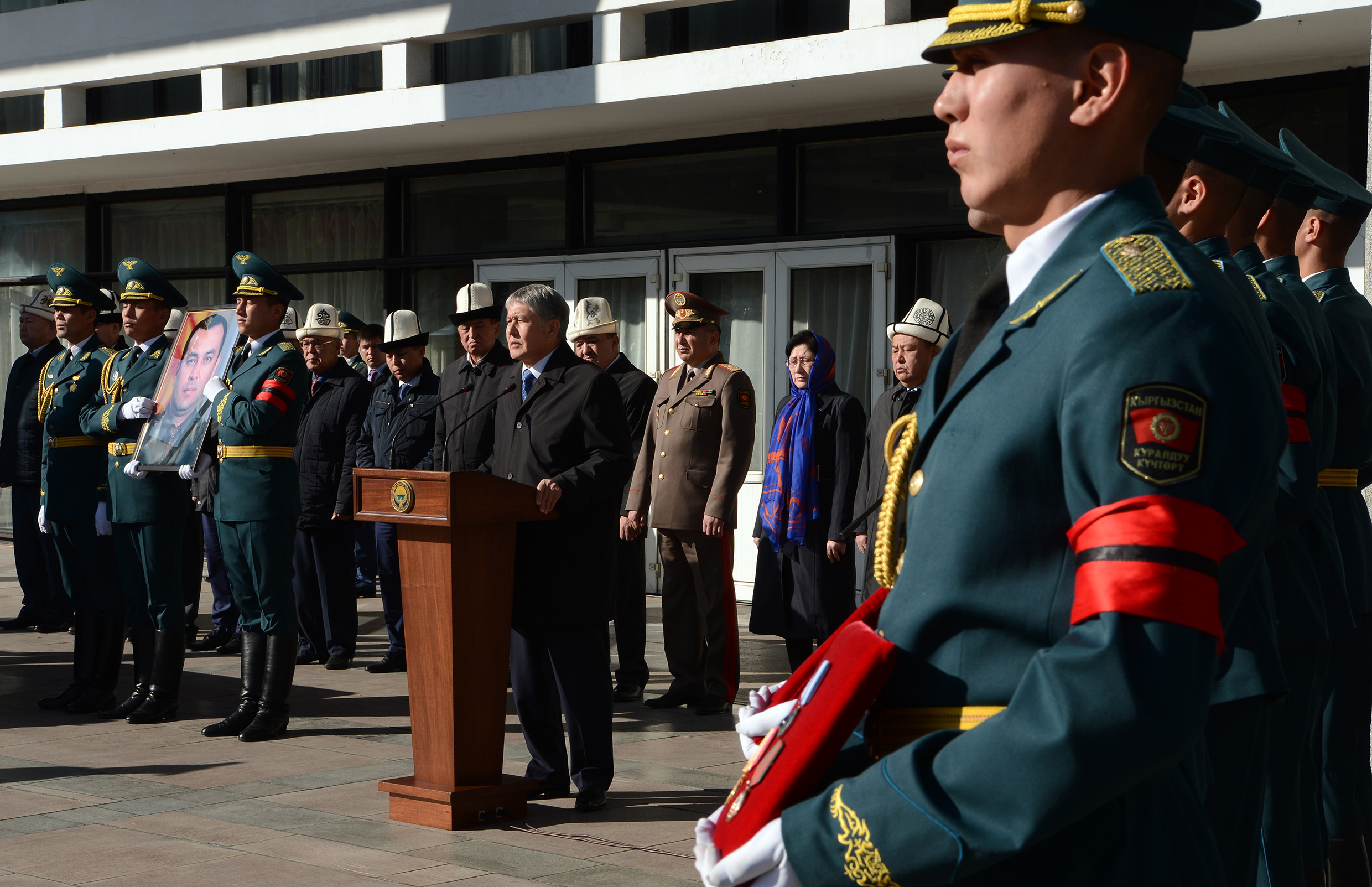 На траурном митинге с последним словом выступили президент Алмазбек Атамбаев, премьер-министр Сапар Исаков и ближайший родственник Темира Джумакадырова.