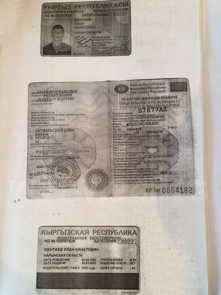 В акте с места ДТП указано, что наезд совершил водитель на авто «Лексус-470» с госномером B 76-77 AI. Однако, как удалось выяснить ИА «24.kg» из собственных источников в Департаменте регистрации транспортных средств ГРС, госномера с такой комбинацией цифр и букв просто не существует. Более того, остается неясным, откуда у рядового сотрудника СБДПМ Бишкека средства на покупку дорогостоящего авто, стоимость которого около миллиона сомов, а расход топлива в зимнее время - свыше 15 литров на 100 километров. Отметим, средняя зарплата сержанта не превышает и двадцати тысяч сомов.