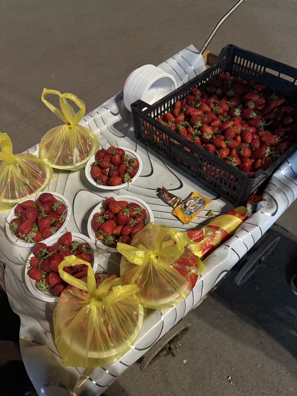 В одном из кафе Бишкека на пересечении улиц Жумабека и Шопокова посетители заметили маленькую девочку, продающую ночью клубнику. Об этом они сообщили 24-kg.com.