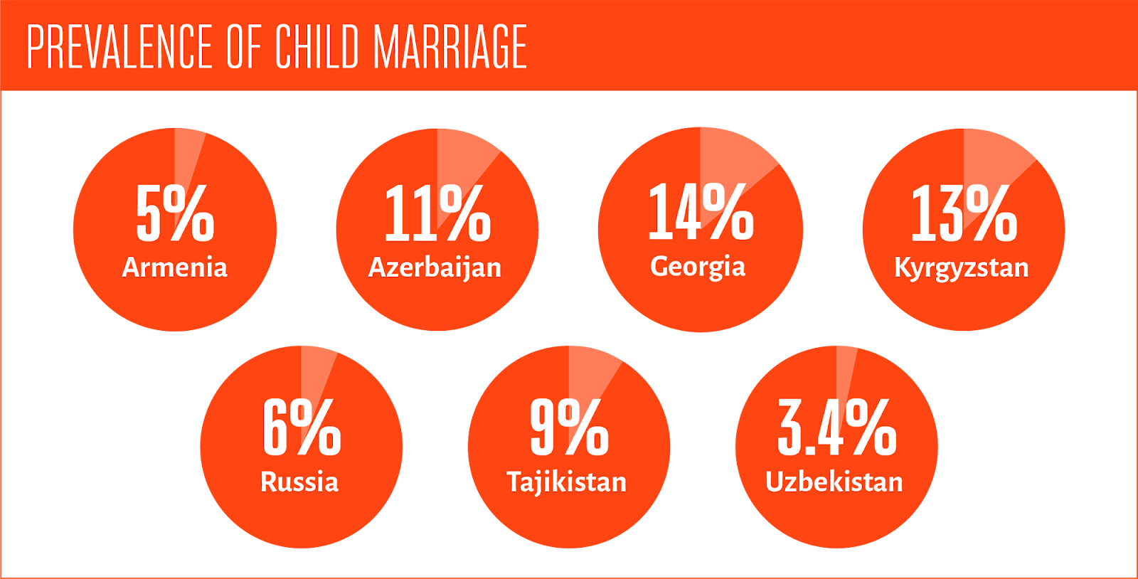 The report says that all seven countries have taken steps to reform their laws on child and forced marriage, but only Georgia and Azerbaijan have set the minimum age of marriage at 18, with no exceptions.