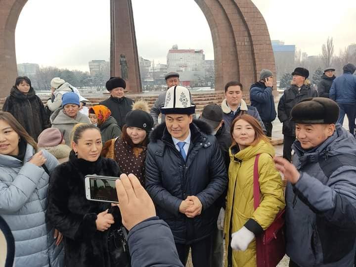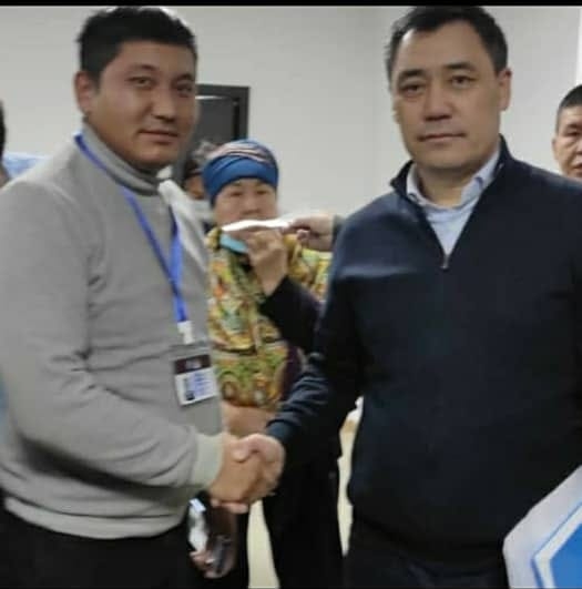 В Instagram у Илимбека Исраилова опубликовано фото с президентом Садыром Жапаровым, членами партии «Мекенчил» и бывшим депутатом парламента Шайлообеком Атазовым.